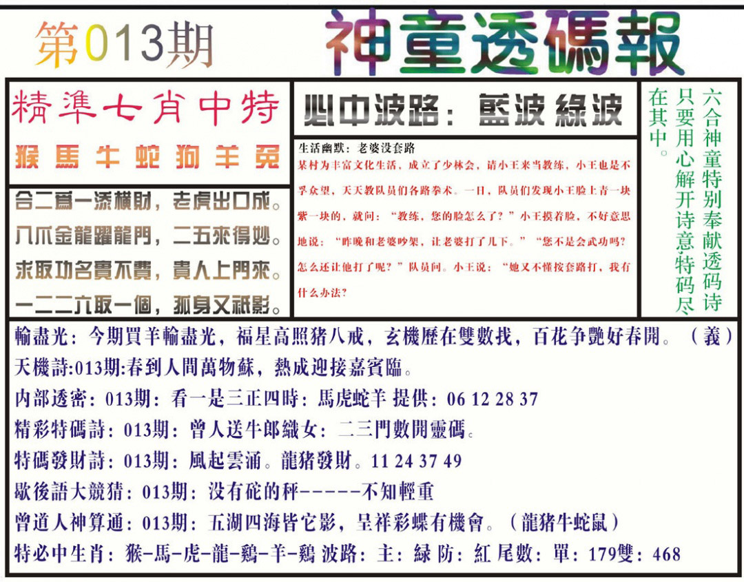 013期:成语爆平特【马壮人强】开:??准